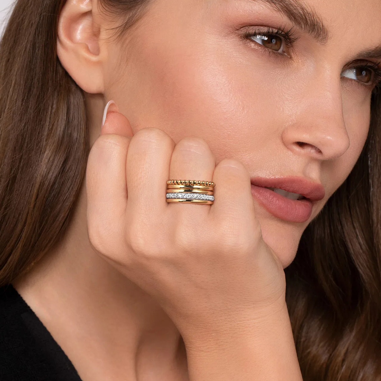 Bujukan Link 14K White Yellow Gold Bujukan Diamond Easy Stackable Ring