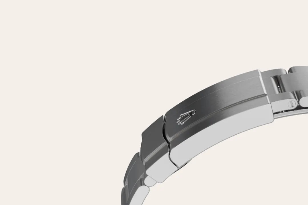The Oyster bracelet is a perfect alchemy of form and function, aesthetics and technology. First introduced in the late 1930s, this particularly robust and comfortable metal bracelet with its broad, flat three-piece links remains the most universal bracelet in the Oyster collection. For the Oyster Perpetual models the Oyster bracelet is fitted with an Oysterclasp.